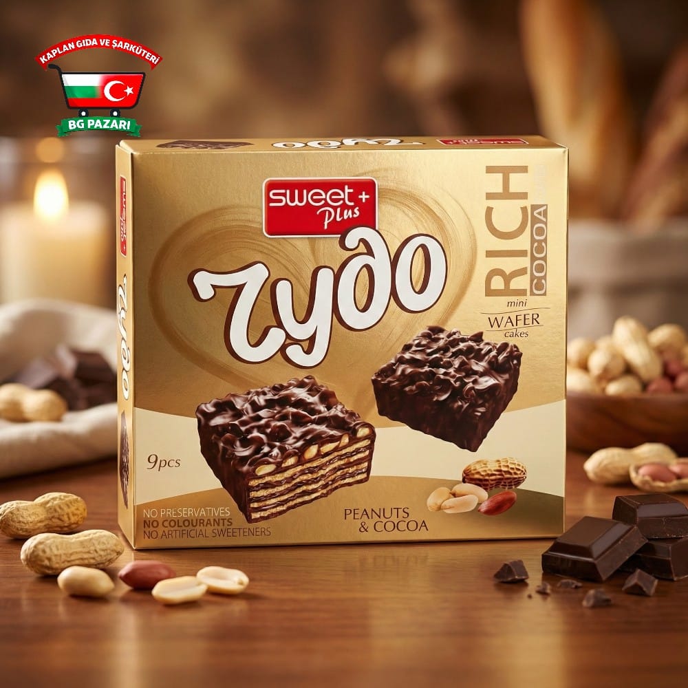 Kakao kremalı (%47,5), yer fıstıklı (%11) ve kakao-sütlü kaplamalı (%30) vafla. (Paket içerisinde 9 adet bulunmaktadır.)